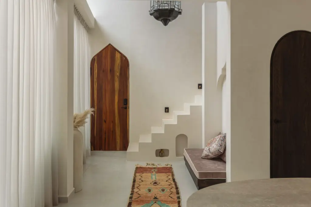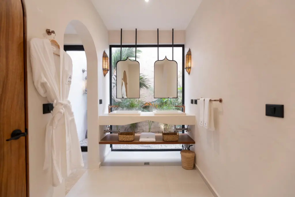 Each suite reveals handcrafted elegance, from arched doors and copper lanterns to artisanal textures that echo the spirit of Marrakech beneath the Caribbean sun.